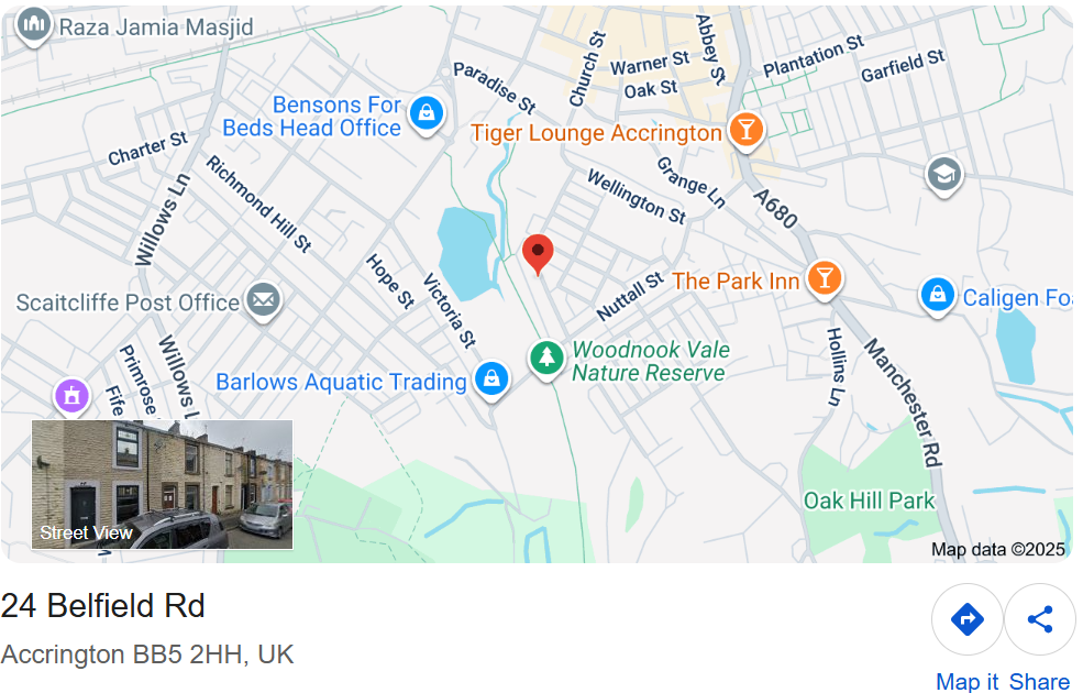 24 BELFIELD ROAD ACCRINGTON ENGLAND BB5 2HH